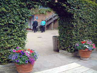 こちらはちょっと趣が変わったティーハウスの 入り口です。 刈り込みの樹木でアーチ良い感じです。 |