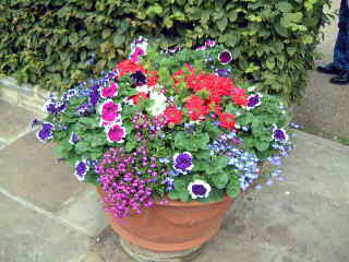| 入り口のコンテナーを見て 何となくほっとしました。 おなじみの花達がどこかの玄関で見たような 佇まいでありました。 |
