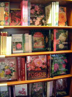 | 入ってすぐにおみやげ物コーナーが 右手にありました。 誘惑に負けて入ったら出口でした。^_^; お帰りはこちら~ また再入場。 本題、図書館のように沢山の園芸のコーナー それは素敵な本ばかり こちらは薔薇の本の棚 (確かこんな棚が10ヶ所以上) ずっと居たかった。 |