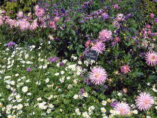| ボーダー花壇はそれは美しく… 夏の花たちが満開です。 三尺バーベナ…初めて知った花(笑) とダリアやノールポールまで咲いている。 |
