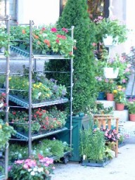 | 玄関前にたくさんの苗が飾ってありました。 お馴染みの一年草ばかりで 特に珍しい苗はなかったです。 |