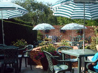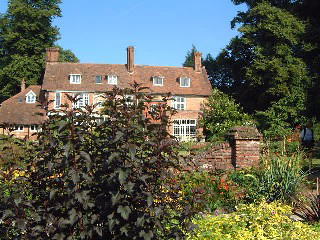 | 庭の奥まったところにお客様用のティーハウスと 中庭がありました。 専門の方を雇っていらっしゃるとのことで 1ポンド180円ぐらいでお茶をゆっくり飲めます。 コンテナーに寄せ植えがきれいに作ってあり 中央には煉瓦で作った池もありました。 |