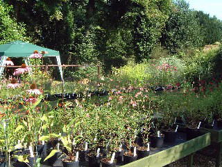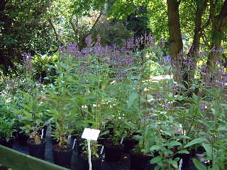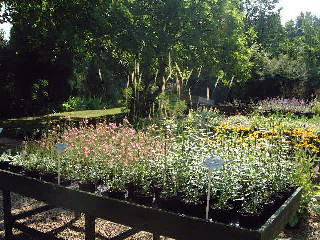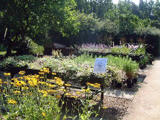 庭の一角に、ナーサリーがありました。 宿根草がポット苗として沢山置いてありました。 値段は、日本とほぼ同じような感じでした。 種類はさすがに豊富ですし、時期も良いせいか 花がしっかり残った状態で売っています。 |