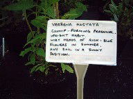 ハンギングは20ポンド3600円ぐらいでありとあらゆる花がぎっしりプラカードには、植物の名前、バーベナホスタータ?