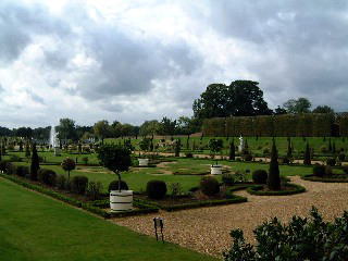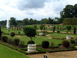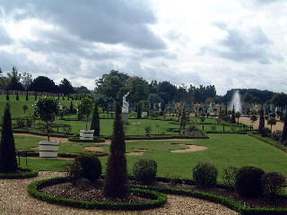 | 噴水が上がっていて、今まで訪れた庭とは何かが違う。そうここは、一般の庭、個人の庭ではなく 王様のお庭なのですね。 うまく言えませんがとても作られた人の気配の感じられないお庭です。 |
