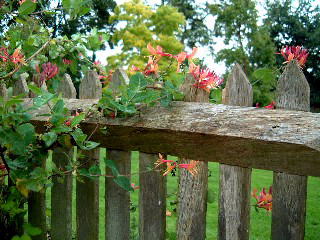 ハニーサックルがとても雰囲気のある柵に絡んでいました。こういうのがとっても好き。 |