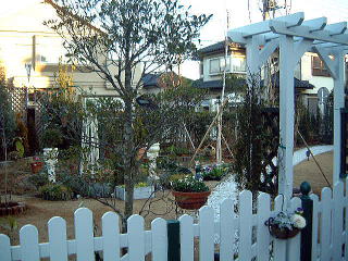 冬枯れの庭の様子、といっても有り難い事に 千葉のこのあたりは温暖で、常緑の緑は濃く 霜に耐えられる花達は少しですが咲いています。 |