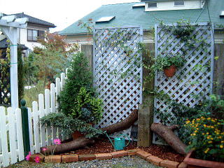 最後にいつもいない私に代わって家をしっかり守ってくれている夫(笑)が作ったコーナーです。 裏の駐車場、まだレンガがジュラストーンか 枕木か決めかねてワイルド状態の所、夏は雑草 秋はコスモス自然のまんまの砕石のみ。 夫がめずらしくレンガを置いたり (曲がってるのイヤン)ジョウロを持ってきたり 桜の木の廃材利用で おしゃれな?スペースを作ってくれました。 私がブーン出来るのはお父さんのお陰ですぅ。 いつも本当にありがとう! 今日は夫の誕生日なのでかなりサービス。 あっ、一言多いっていつも言われてるのに… 又やってしまった^_^; |