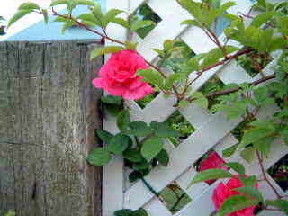 アンジェラは3年前に2本アーチの両側に 植えました。 昨年は瘤が出来る病気にかかり心配しましたが 何とか持ち直しています。 |