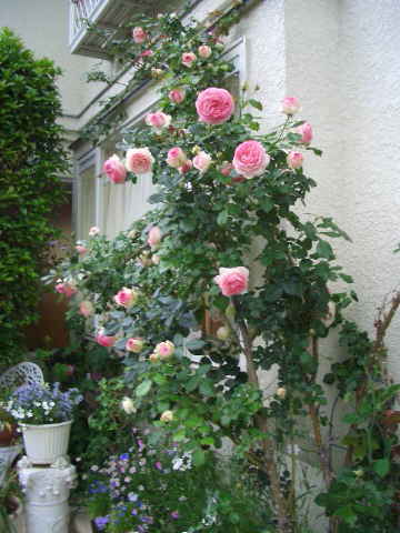 | 今年のニューフェース、スパニッシュ・ビュティー こちらは早咲きではらはらと花びらが散る感じも 素敵でした。今年は5つぐらいの蕾だったので 来年に期待! |